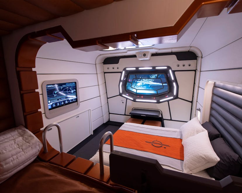 Of course, the rooms families book won’t look anything like your standard hotel room. Rather, they’ll resemble starship cabins, according to a mock-up photo supplied by Disney. But while every room comes with an out-of-this-world view — Disney has said guests can expect to look out their room’s window and see “ships, planets, stars and other breathtaking galactic sights float past on the majestic canvas of the cosmos” — Disney has stressed that a stay at Star Wars: Galactic Starcruiser doesn’t include an actual trip into space.