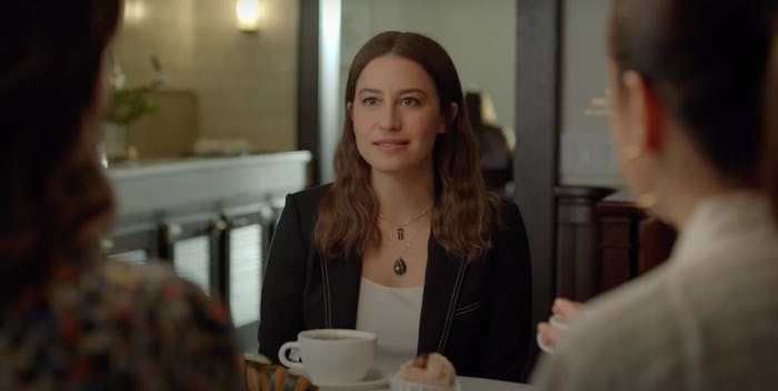 Take this exclusive clip, with Lucy (played by Glazer) and in a bourgie coffeeshop for her new “mommy group,” talking to Sophia Bush and others about getting access to a highly-sought-after fertility clinic, The Hindle Group (Dr. Hindle is played by none other than a gray-bearded Pierce Brosnan) where perhaps things are not as they seem, but the gals are more concerned with getting tummy tucks: