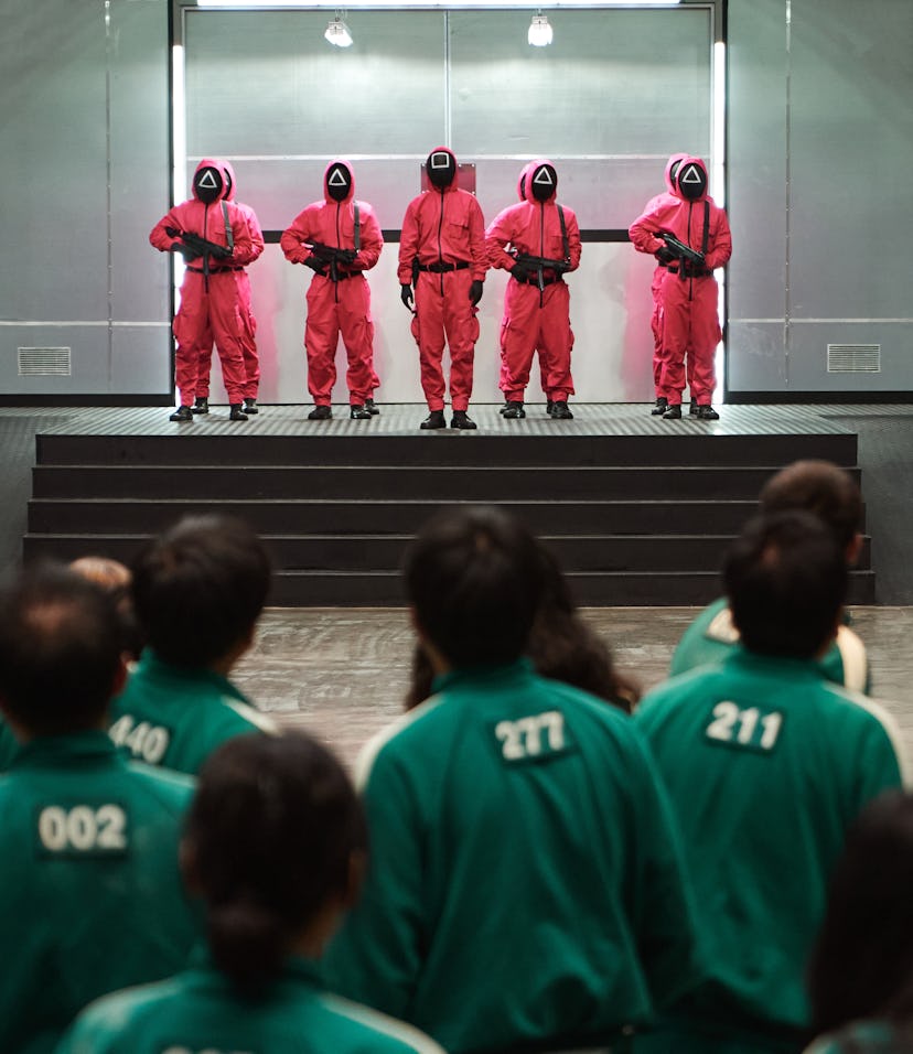 The Netflix limited series tells the story 456 severely indebted people competing in a series of children’s games for a chance to win ₩45.6 billion (or about $38.5 million) under the watchful eye of a cadre of masked, uniformed soldiers. The catch? Losers pay with their lives. So something like a simple game of “Red Light, Green Light” or marbles turns into a massacre, blood and bullets flying.