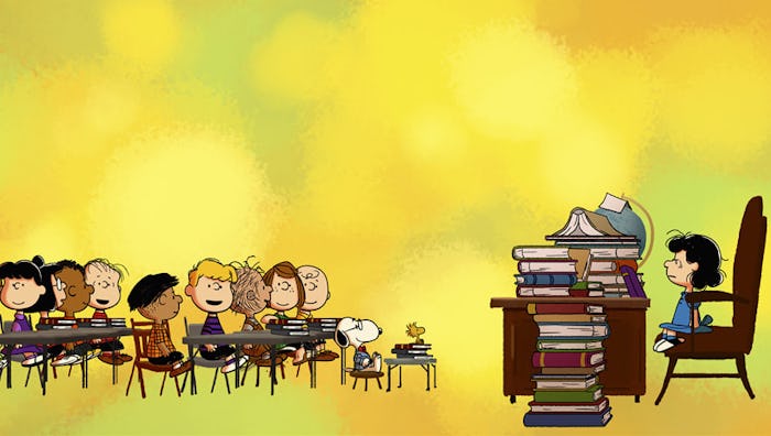 Lucy and the Peanuts crew are back with a back-to-school special sure to inspire your kids to sharpen those #2 pencils and and get them psyched to board that yellow bus. Lucy’s School tackles those jitters that most little students feel when they’re about to begin a new school filled with many new challenges and unfamiliar faces. When the Peanuts are feeling anxious about heading back into the classroom, they inspire the bossiest member of their crew to start her very own school. But Lucy is about to learn the very important lesson that teaching isn’t exactly a piece of cake. It’s much harder than just standing in front of the class and reading facts straight from a boring textbook. Ahead of its premiere, Romper has an exclusive sneak peek that’s sure to and get your kid giddy about shopping for that cool backpack and prepare your little one for the unmistakable sound of that school bell.