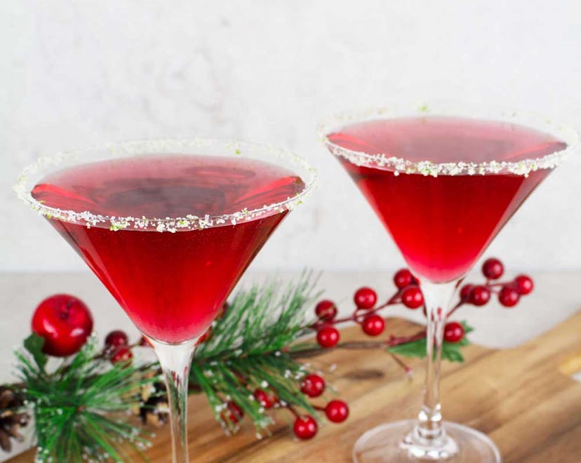 Now here’s a mocktail that even the ladies from Sex and the City would approve of: a Christmas virgin Cosmopolitan, created by The Mindful Mocktail. With its perfect red color and sugar rim, it kind of looks like Santa’s hat flipped upside down.