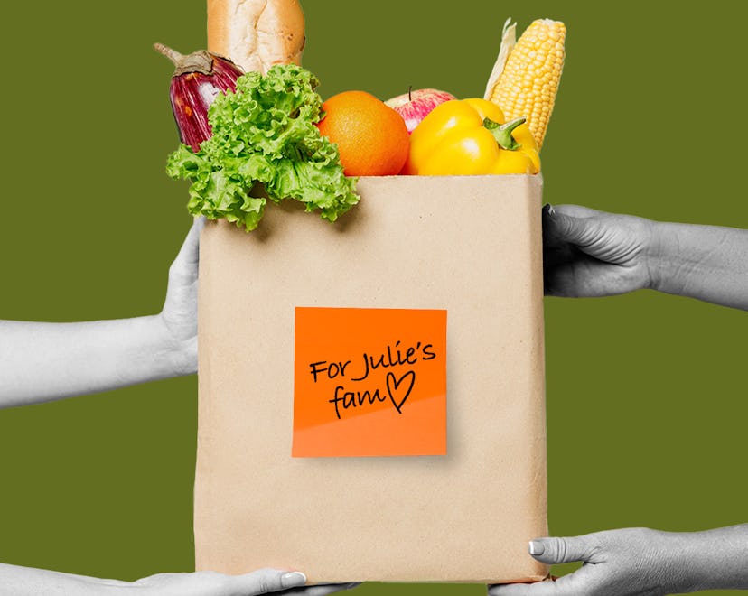 Despite, as she told me later, some anxiety about relinquishing control of her shopping list and managing the orders of two families, Julia was game. Thus began our experiment in mutual care, which works like this: On Mondays we send Julia a list (thoughtfully separated into categories like dairy and frozen, by 9 a.m.). She shops for both of us, impressively putting everything into one cart that she is able to separate into two transactions at checkout. Later in the day, she drops bags on our front porch, texts me a picture of our receipt, and I Venmo her the total.