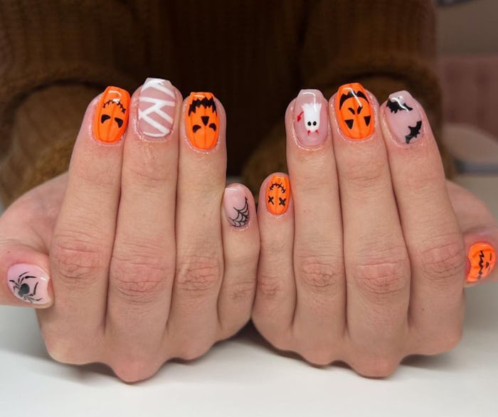 And even though these nail art designs are Halloween-themed, there’s a good mix of colors — some are orange or black, of course, but there are also options that incorporate non-Halloween colors as well, like blue and red. So if you want to prioritize your nails matching your outfits but you also want them to be festive, you have plenty to choose from here.