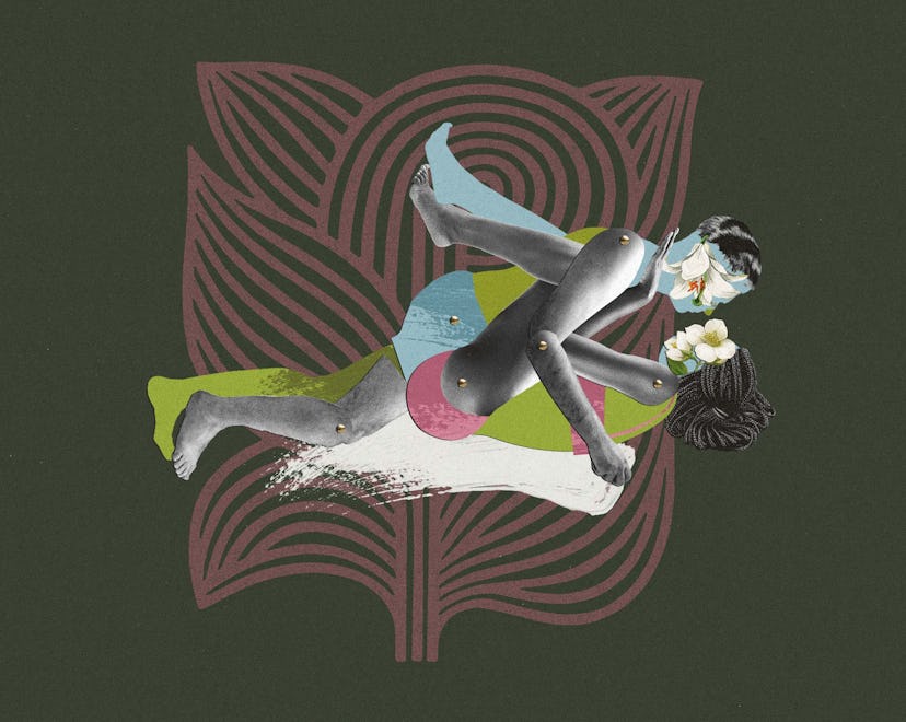 Varsha is more commonly known as reverse cowgirl, and while it seems like a simple enough position, it does require some patience and trial and error to get it just right (there are some important angles involved). First, the penetrating partner lays down flat on their back, then the receiving partner straddles them on top, facing their partner’s ankles. They’ll lower down for entry, then bend forward and grab their partner’s ankles before they get going. To make this a little easier, the person on top can skip leaning forward or the person on the bottom can hold their partner’s hips to help them find the right angle and rhythm.