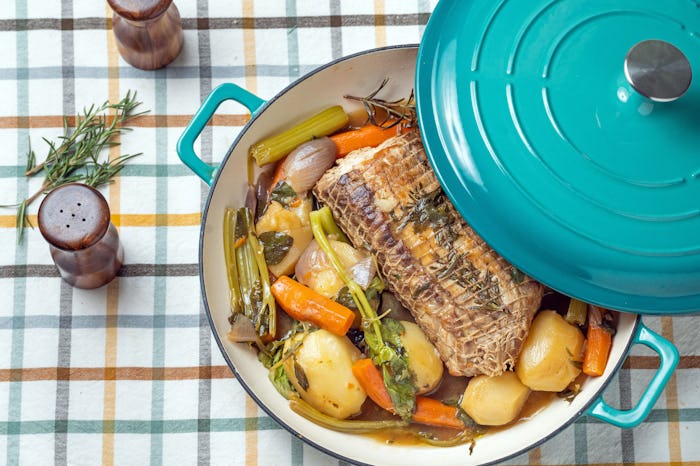 This is one recipe that could not be simpler to make even if you tried. To make this one-pot dish from A Pretty Life, you literally throw an entire bone-in pork rib roast into a big pot with apples, carrots, and onions coated in oil and spices, and roast it all together in your oven for a couple of hours. Voila! Dinner is served.