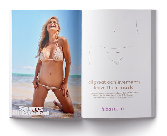 The photo is part of the brand’s partnership with maternity-care company Frida Mom as part of their “Pay With Change” campaign, a new gender equity advertising initiative in which Sports Illustrated will accept advertising only from companies with demonstrated programs to advance gender equality and drive progress for women’s empowerment.