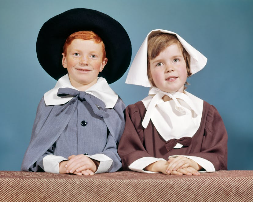 Every person remembers dressing as a pilgrim and eating rolls and green beans at their elementary school lunch before getting out for Thanksgiving break, right? I can feel this photo, can practically taste the rolls and feel the hat on my head.