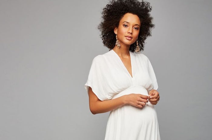 When you're a pregnant bride-to-be, finding your dream dress is absolutely possible... but perhaps a little trickier since you're shopping as your bump grows. To avoid shelling out an arm and a leg on expensive tailoring, you need a dress that honors the bump, so you can walk down the aisle — and bust a move — with ease. However, that does not mean you have to settle for a shapeless silhouette. There are so many comfy bridal looks for pregnant brides that are as just as stylish as any non-maternity gowns.