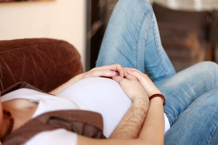 Look, your breasts have been growing throughout your entire pregnancy, but they can feel really huge by your third trimester. According to the Mayo Clinic, by the end of your pregnancy, you might have an additional two pounds of breast tissue. That may not sound like a lot, but in the middle of sex, all of that bouncing and moving around can really make them hurt. Not to mention that the American Pregnancy Association noted that tenderness and hypersensitivity in your breasts is a symptom of pregnancy, so they may be even more painful with the added weight.