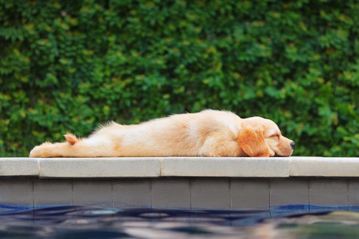 According to the American Kennel Club (AKC) Canine Health Foundation, dehydration occurs when your dog looses fluids faster than they take them in, causing their bodies to have to "borrow" water and important electrolytes from their cells to keep working properly. Your dog can easily become dehydrated when it’s hot outside, because they lose water when they sweat and pant to keep cool, PetMD notes. Because your dog can’t say, “I’m thirsty,” you need to be on the lookout for dehydration to keep them safe and healthy. Important signs of dog dehydration include a loss of skin elasticity, or dry mouth, notes the AKC Canine Health Foundation. According to Vets Now, other symptoms, like sunken eyes, lethargy, or collapse, might actually indicate more severe dehydration that requires immediate medical attention.