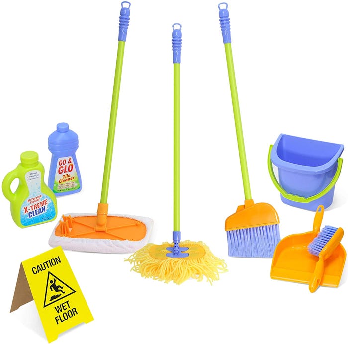 As Mary Poppins wisely said, "In every job that must be done, there is an element of fun." Using kid clean-up hacks such as playing music or setting a timer will make tidying-up time enjoyable and save you a lot of nagging, as suggested by Working Mother. But giving your child the right equipment is important, too: Would you want to push a mop three times your size, or use someone else's filthy dust rag?