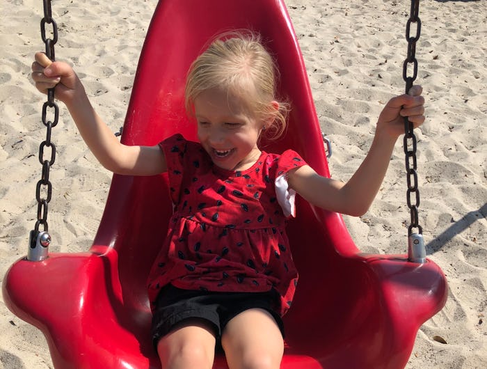 While the response to the video has been overwhelmingly positive, Zukowski tells Romper that a number of people questioned why she didn’t just carry her daughter over to the swing and be done with it. Zukoski says that after she stopped recording, she did pick Iris up and bring her over to play on the accessible swing. However, carrying Iris means that her hands are not free to help Iris’s twin, Harmony, who, while independently mobile without a walker, also has cerebral palsy, as well as a diagnosis of autism. Furthermore, not every child can be carried for such a distance, and not every parent or caregiver is able to do so safely. And, more to the point, this is a solution that does not constitute inclusion or accessibility, which would allow Iris to play as independently as is possible.