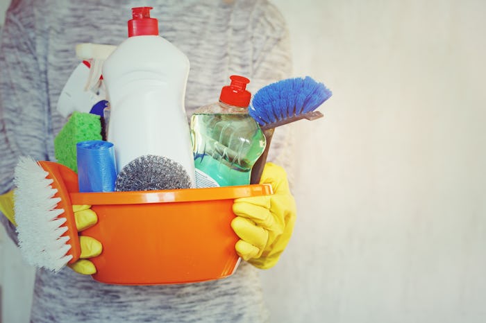 With all of the precautions to take during pregnancy, it can be confusing as to what's safe and what's not. Smoking, drinking, and most prescriptions lean heavily on the "unsafe" side, but much of everything else lands in a gray area. Caffeine, sushi, and lunch meat aren't considered as risky as they once were, and most daily physical activities are given an OK by doctors. But what about household chemicals and substances, like cleaning products? Can you use cleaning products if you're pregnant?