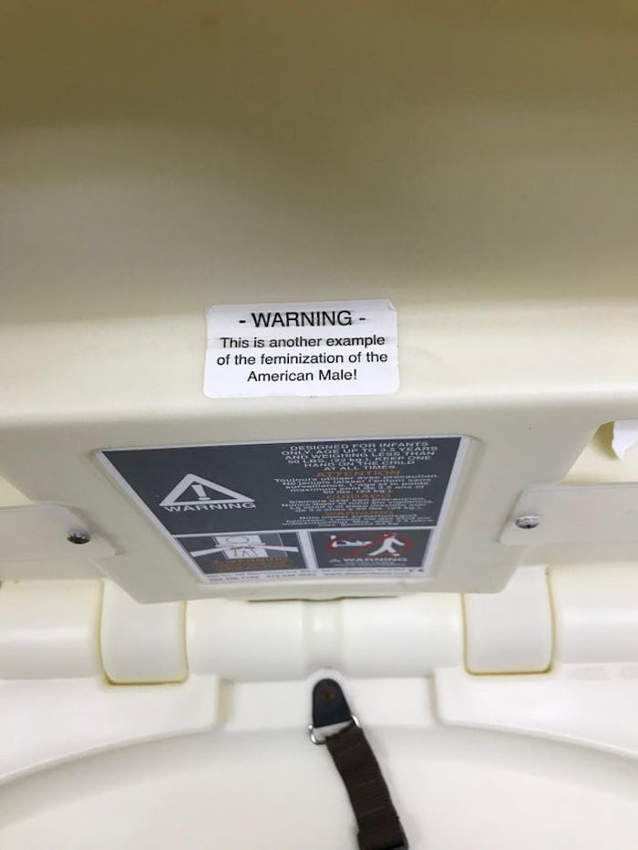 As The Daily Dot reported, an indignant dad took to Reddit after discovering an offensive — and extremely sexist — sticker on a baby changing table in a public restroom. "Saw some Dad shaming at our local Rural King," he wrote, "Caring for your kids makes you more of a man, not less of one." The original poster also shared a photo of the sticker, which read: "WARNING: This is another example of the feminization of the American Male!"