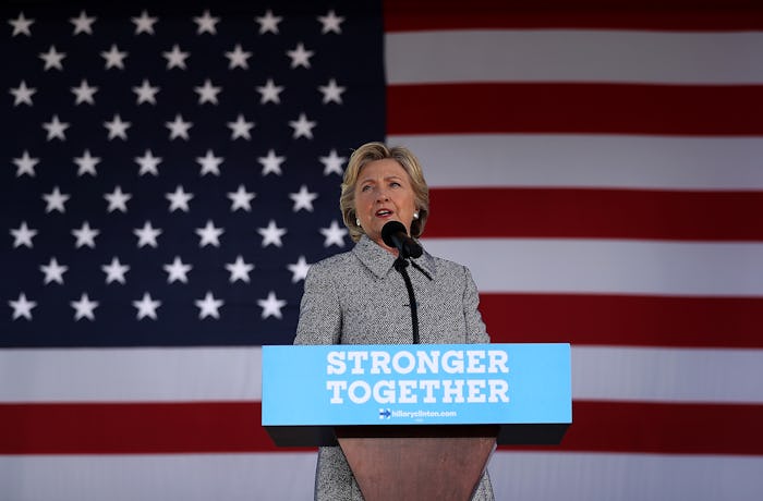 Trump relentlessly took aim at Machado in back-to-back statements on Twitter. He insisted that "Crooked Hillary" was "duped" by Machado, who Trump referred to as a con. (Trump's campaign has not responded to Romper's request for comment.)