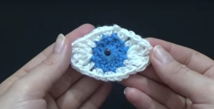 Kiki Crochet has posted a helpful video tutorial that will help illustrate how to crochet an evil eye even more clearly. You'll need two colors of yarn, white and something cheerful for the iris part, along with a crochet hook and safety pins for adhering your eye to your outfit. You begin with 12 double crochets in the center before moving outward with the white yarn. While you might not be as fast as Kiki is from the start, she does make it look remarkably simple to pick up rather quickly.