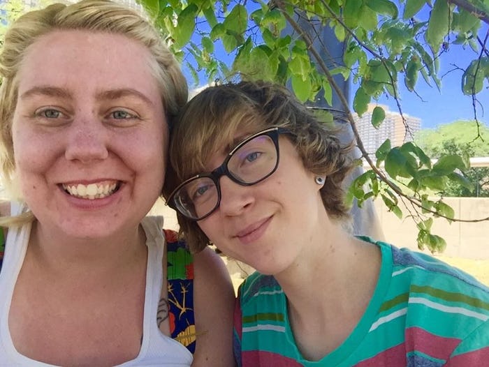 The festival portion of Pride is, in our city, held separately from the parade, in a nearby park that also hosts other summer fests. It isn’t my favorite setup ever, but given that we'd made such an effort to get to Pride, we decided it would be a shame to leave right after the brief parade. So along with some friends we ran into on the way, we joined the line to enter the festival. This was the morning after the Orlando Nightclub shooting, and security was on everyone’s mind, so the line was moving painfully slowly while security carefully checked and double checked everyone.