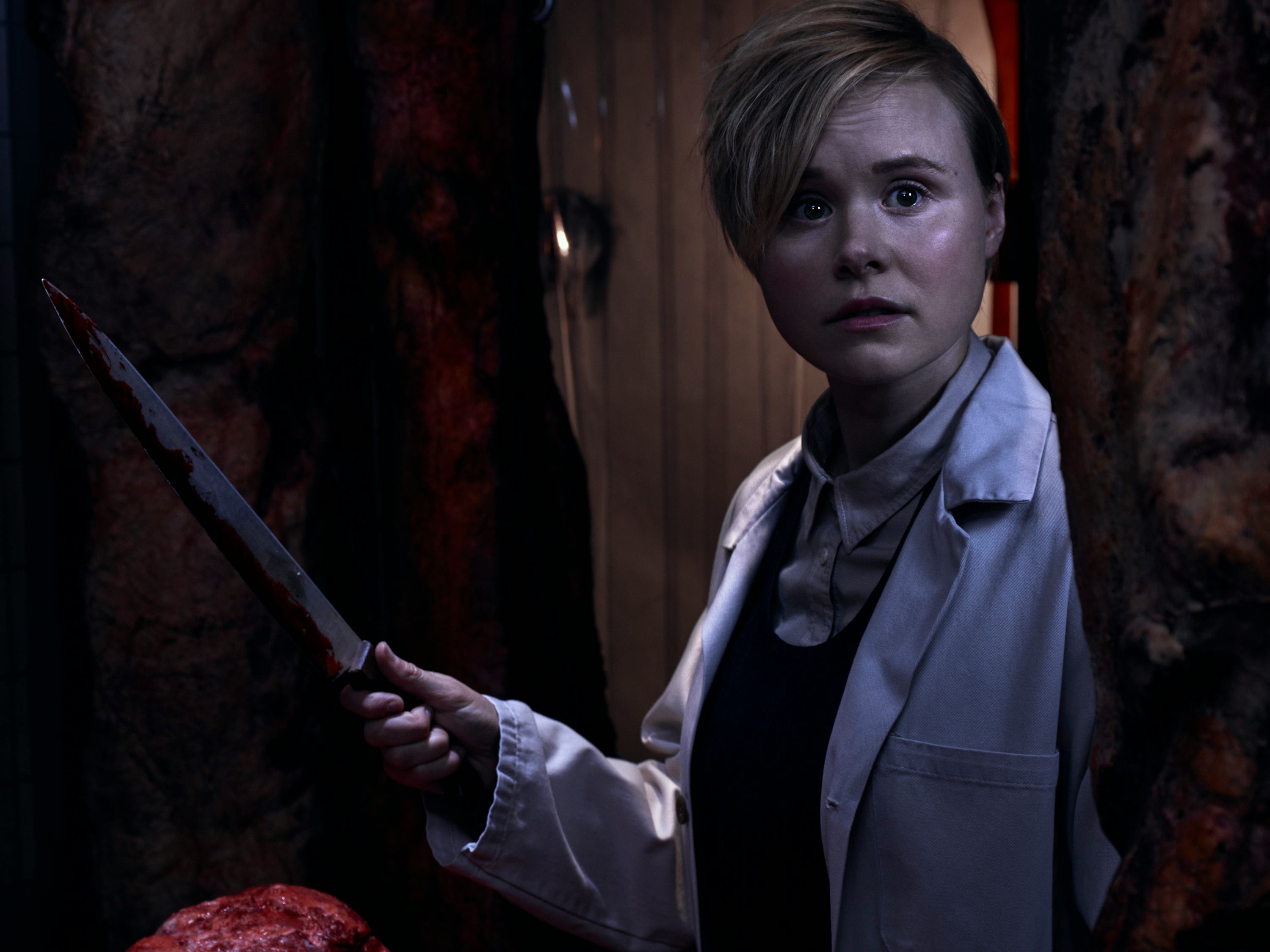 Butchery on Main is owned by couple Ally and Ivy. Ivy, played by Alison Pill, has taken the reins in restaurant operations as of late. Ally, portrayed by Sarah Paulson, is suffering PTSD from the 2016 election and copes with several phobias. It seems that Ivy is (or wants to be, anyway) more focused on the food and kitchen, while Ally handles the operations. On last week’s episode, there was a confrontation with two Butchery employees: head chef Roger and Pedro, who’s of Hispanic descent. Roger told Ally that he wants Pedro to be fired; a few scenes later, Roger was found murdered in the restaurant’s meat locker.