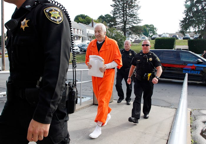 The saga of the Sandusky family continued on Monday when Jerry Sandusky's son, Jeffrey, was arrested on child sexual abuse allegations. Jeffrey, the 41-year old adopted son of the former Penn State University football coach who was convicted of child molestation in 2012, was charged with 14 counts, including criminal solicitation and corruption of minors. Romper's request for comment from Sandusky's attorney, Lance Marshall, was not immediately returned.