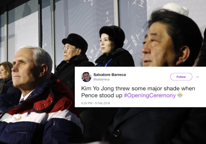The Olympics are supposed to be about unity, togetherness, and a shared sense of friendly competition. But this year, during the 2018 Winter Games Opening Ceremonies, some shade was definitely thrown in a few directions. Take Kim Yo Jong looking at Mike Pence, for instance. The side-eye thrown in the vice president of the United States' direction was as obvious as it was uncomfortable, but, in good ol' social media fashion, Twitter was here for it.