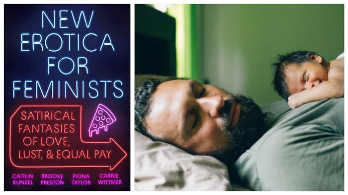 After baby, the things you find sexy definably change. Where once you fantasized about a strong man opening a jam jar then tossing you over their shoulder, or a woman hacking a log in two with her homemade axe then interlacing her hands behind your neck while you listen to Seal, new moms often find that the hottest thing a partner can do is hang out all those Dr. Brown's bottle nipples to dry on the flower stalk rack, or affix a wall-mount to that new chest of drawers, or discuss politics with nuance and understanding. The disconnect between the concerns of supposed "erotica" for women (like, say, being spirited away to a forest and robbed of your mortality by an overbearing vampire boyfriend, or getting into BDSM for the kitchen backsplashes and expensive shoes) and the care, help, and attention women actually want was the seed of a humor piece that went viral on McSweeney's earlier this year by Brooke Preston, Caitlin Kunkel, Carrie Wittmer, and Fiona Taylor. New Erotica for Feminists: Satirical Fantasies of Love, Lust, and Equal Pay is now a hard, throbbing, satirical title from Penguin Random House, and available from all the sexiest places you like to get books. It is funny and smart and will put you in a good mood.