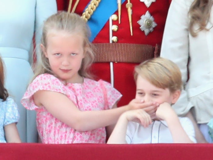 Luckily for Prince George of Cambridge, he has a lot of cousins to play with. One of those cousins is 7-year-old Savannah Phillips, the Queen of the United Kingdom's great-granddaughter. You might remember Phillips as the little girl playfully shushing a smirking Prince George at a royal function on Saturday. The cute moment went viral, and the picture is proof that Prince George has a fun rapport with his young relatives. But similarly to other kids his age, Prince George also fights with his cousins from time to time. And on Sunday, the public witnessed one of these moments when Phillips was caught on video pushing Prince George down a small hill at a polo match. Following the release of the video, some people called Prince George's cousin a bully — a sentiment that might be a bit overboard.