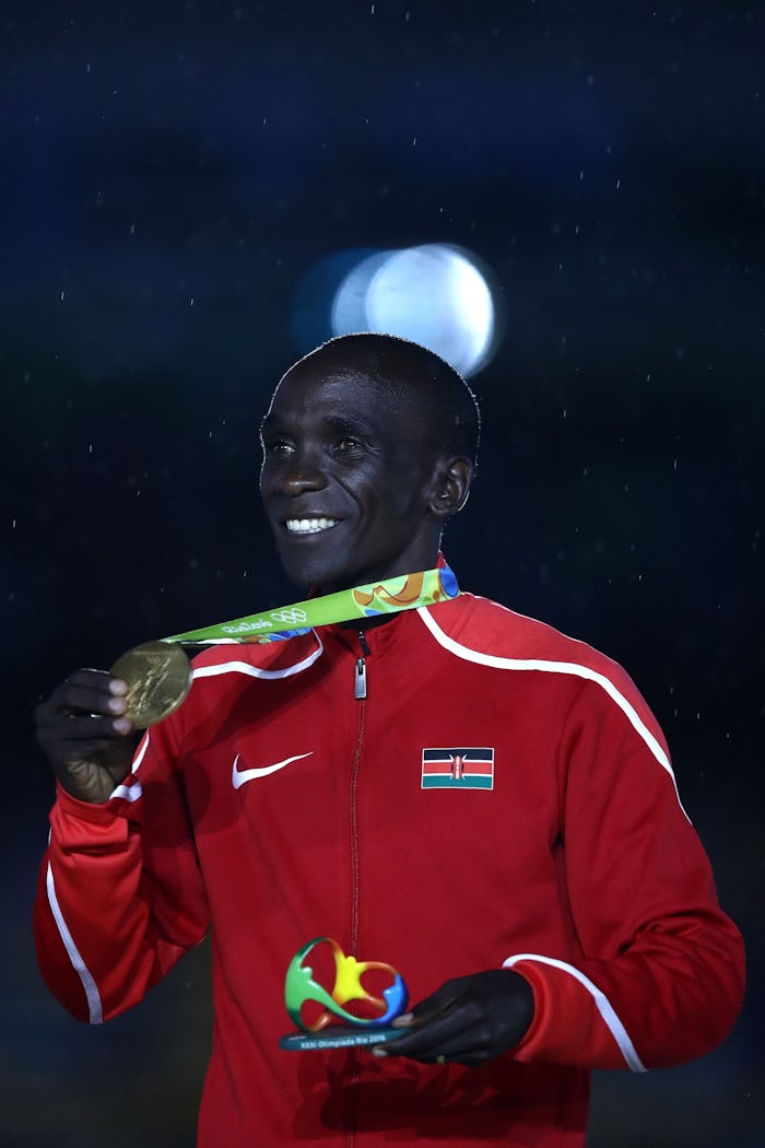 For many, this marathon medal ceremony was an moving moment. The sheer amount of emotions on Kipochge's face was enough to make even the most stoic of humans get a little misty-eyed. I certainly don't pretend to be the most stoic of humans, and watching Kipochge accept his gold medal while the Kenyan national anthem played was quite moving.