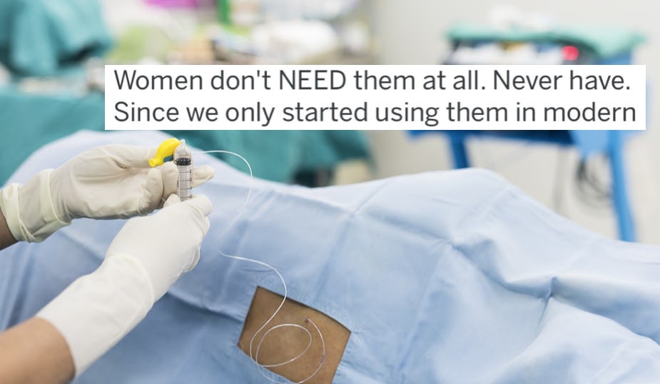 Writer Nicole Cliffe tweeted a screenshot of a post by an unnamed father of two who thought it would be a good idea to share his feelings about whether women really need an epidural. His wife didn't have one, you see, so this guy's got the corner on the epidural market. Despite never having witnessed one. The origin of the post is unknown, but PopSugar noted that it comes from a Reddit thread.