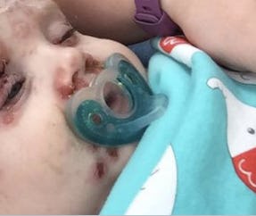 In June of last year, mom Kayley Burke of Brisbane, Australia, shared a photo of her then-11-month-old son Elijah, who had contracted chicken pox, as a plea to anti-vaxxers to vaccinate their children, according to PopSugar. Burke's post began making the social media rounds once again on Tuesday, most likely because the photo is horrifying. It's always hard to see a baby suffering, and in this case the visuals are particularly dramatic.