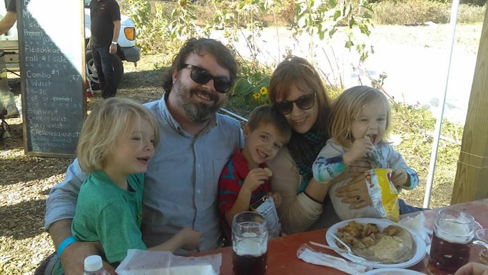 Over the years, I reconsidered my stance on kids. First I said OK, we could adopt them. But he wanted biological children, and Blaise was eventually conceived after a long night of drinking. And the first time Bear looked into our son’s eyes, I knew that my initial instinct was right. This was a man made to be a father. You could see it in his body, in the way his whole being leaned toward this screaming red potato. You could see it in his eyes, in the way he stared at the baby. And you could hear it in his voice when he breathed, “My son.” He went on to thrive as a daddy: to equally share everything possible, down to harassing me into letting him wear the baby instead. He cared for his sons gently, lovingly, the same way I saw how he treated those greyhounds so long ago. The dogs showed me he’d be a stellar dad. It just took me several years to come around to the idea.