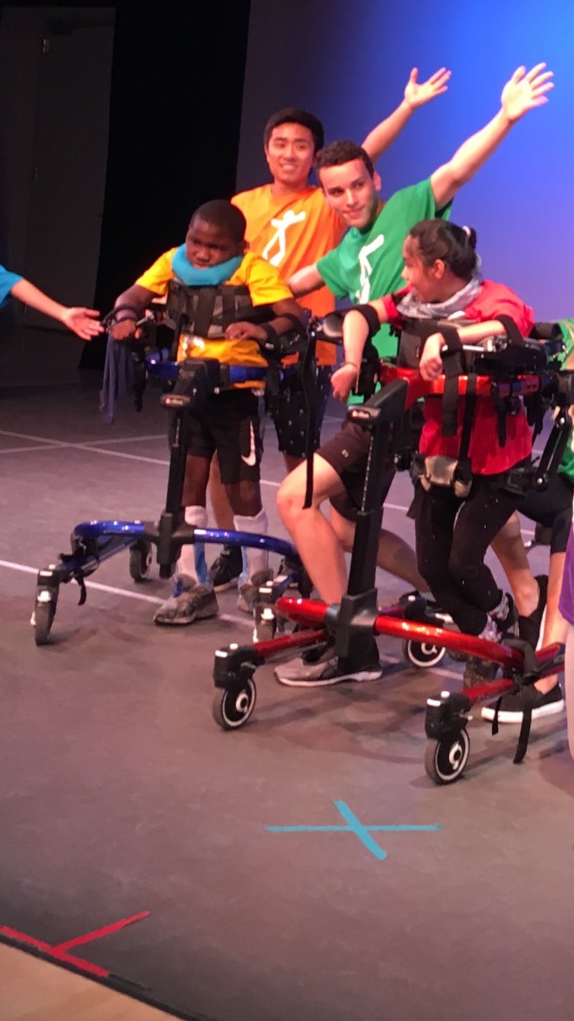 This connection is continued off stage: midway through the week it is not unusual to find Josie speeding down the hallway with her partner standing tall on the back of the chair. Josie loves being able to share her chair with her partner in this way. “I like that, because it feels fun, because I get to control my chair. And when someone is on it I get to control where we’re going so it is really, really fun.”