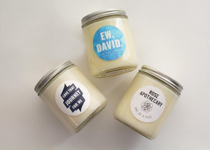 Ew, David. It's a testament to actress Annie Murphy's comedic chops that she's able to make this very simple utterance so hilarious. Every time her character Alexis tosses out an "Ew, David," fans of Schitt's Creek rejoice. And now these diehard lovers of the Rose family have further reason to celebrate, for the Etsy gods have now sent unto them these handmade scented Schitt's Creek candles.