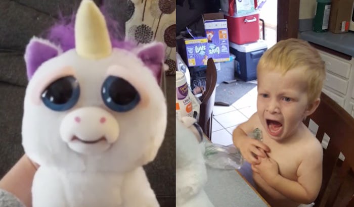 During the month of October, something makes everything — like pumpkins, friendly ghosts, and even innocent unicorn toys — seem a lot more scary. Yes, unicorn toys. Feisty Pets are a lovable, yet supposedly terrifying toy that your child will love — but you might want to brace them before you hand them their new plush friend. This is because this boy's reaction to what happened to his toy unicorn will make you cry, but only from laughing.