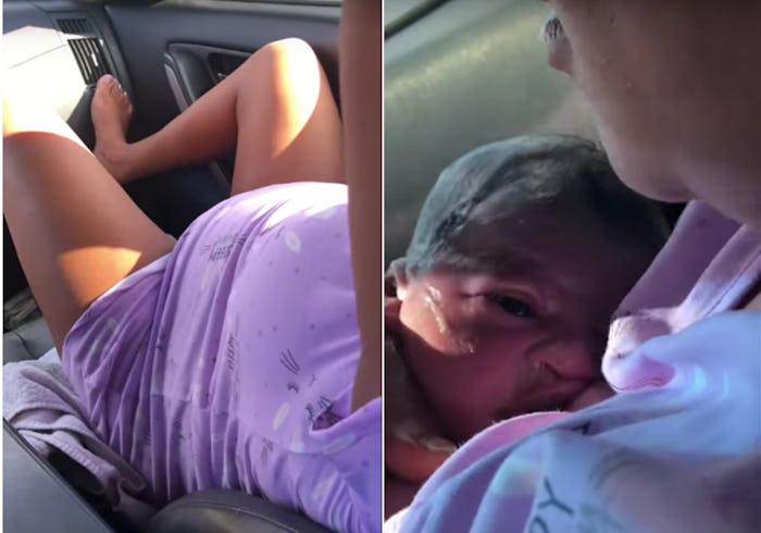 It may sound like a wild scene from a movie, but a real-life mom gave birth in a car, in the front seat, before they could reach the hospital earlier this month. And if you don't believe it, there's plenty of proof. The woman's attentive (and, TBH, very calm) 11-year-old son recorded the whole thing go down and, of course, the footage capturing this magical moment has since gone very viral.