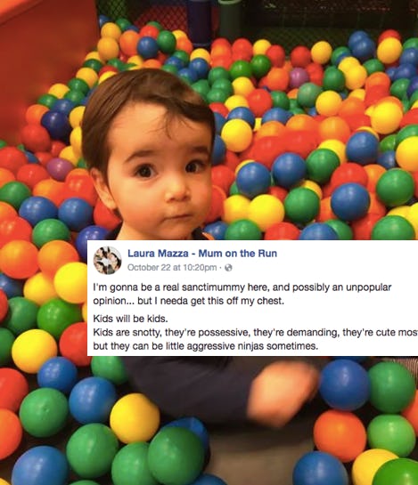 Laura Mercer is the mom behind the popular The Mum On The Run blog. On Sunday, she took to her blog's Facebook page to vent about the madness at her local child's play center, particularly when it comes to parents not really paying attention to their kids. Mercer described how at a recent trip to this play center, she had to get involved with kids other than her own — despite how much she absolutely didn't want to, because, truthfully, she shouldn't have to.