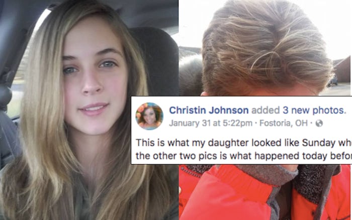 Johnson took her daughter Kelsey out for a birthday treat a few weeks ago to have highlights put in her hair, as she shared on Facebook on Jan. 31. The young girl from Fostoria, Ohio looked happy and excited in a photo her mom shared on Facebook, but Kelsey's father and her stepmother were allegedly not happy about the young woman's new hairstyle and Johnson contends that they forced her to cut it all off, as BuzzFeed News reported. Although no explanation was given, and neither the father nor the stepmother have responded to Johnson's post, the alleged move has caused a maelstrom of criticism on Facebook.