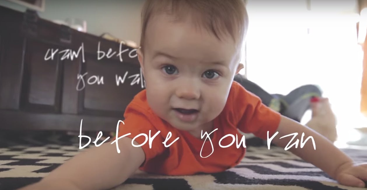 And add to these lyrics shots of babies crawling, toddlers walking, and children skipping stones, scaling hills, and climbing trees and — well — cue the water works.