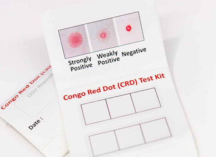 "We found out that the urine of women with preeclampsia has proteins in it, and these proteins are misfolded — like folded back on one another — as opposed to a strand of a protein," she tells Romper. "Because of this shape, it has a unique ability to bind to a red textile dye. Not misfolded protein does not have that ability."