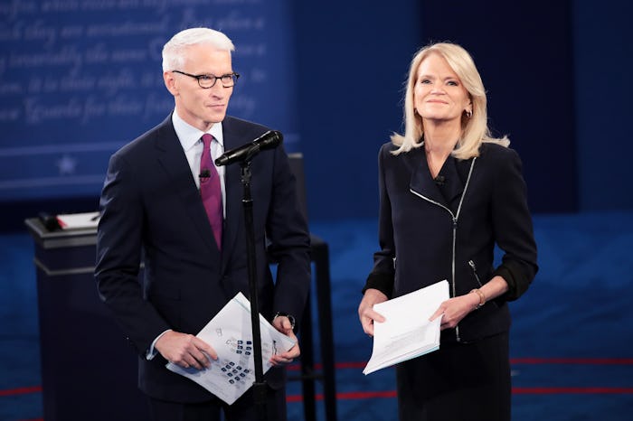 Sunday night's town hall-style presidential debate was quite a departure from the formal, structured debate hosted by Lester Holt in September. Half of the questions came from the audience of undecided voters at Washington University in St. Louis, while the other half were posed by moderators Anderson Cooper and Martha Raddatz, whose questions were "influenced by voters’ concerns voiced on social media," according to Forbes. Many viewers were frustrated by Holt's failure to fact-check Republican candidate Donald Trump's statements at the first debate, and these tweets about Martha Raddatz moderating the presidential debate show that she didn't let him get away with any shenannigans.