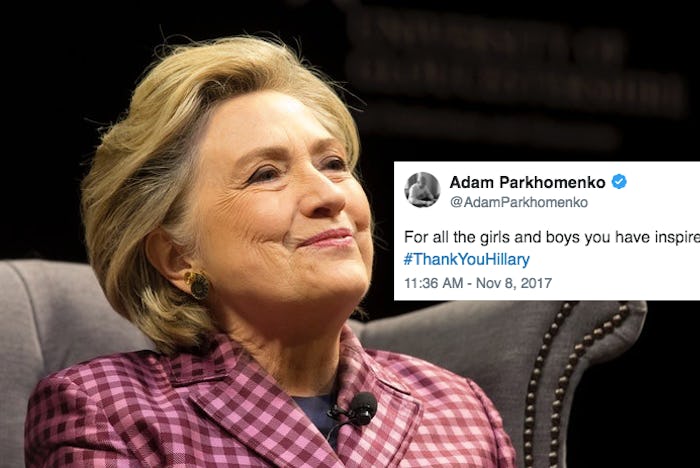 It's been exactly one year since Donald Trump was elected as the 45th President of the United States of America. On this day, millions of hearts were broken when Trump came away with the victory and Democratic presidential nominee Hillary Clinton emerged as — as Trump might say — the "loser." But in the year since the election, a lot has been learned from the successes and failures of the candidates — including the positive influence one candidate had on so many. In an act of complete kindness, Twitter is thanking Clinton for highlighting the influence women in politics have on children and it's so inspiring.