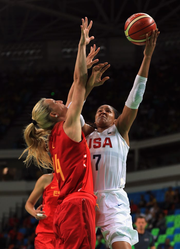 Cruising and crushing their way to their sixth consecutive Olympic victory, the United States women's basketball team will take home another gold medal at the 2016 Olympics in Rio de Janeiro. After a slightly sloppy start, Team USA found their bearings and pummeled Spain — scoring 101-72 on Saturday afternoon in the Brazilian arena — marking 49 Olympic wins in a row for the impressive squad.