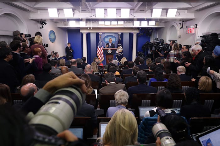 On his path to the presidency, President-elect Donald Trump developed a rather contentious relationship with the press — and it's one that hasn't exactly improved in the days and weeks leading up to Trump's inauguration. During his first press conference as president-elect, Trump refused a CNN reporter's question, labeling him "fake news," and called BuzzFeed a "failing pile of garbage." Needless to say, Trump's relationship with the press is off to a rocky start. So where, exactly, will it go from here? What will happen to the White House press briefings the public has grown used to?