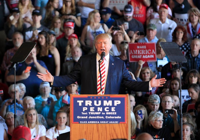 During the first presidential debate in September, Trump stated that nuclear armament is the "single greatest problem the world has" and that "nuclear is the single greatest threat," according to NBC News. He's also made a point to say that he would be the “last to use nuclear weapons," as president, according to TIME, and that "it’s a horror to use nuclear weapons.” But the real concern about Trump's nuclear policy isn't even about whether or not he would use them, but the fact that he appears to be in favor of arming other countries.
