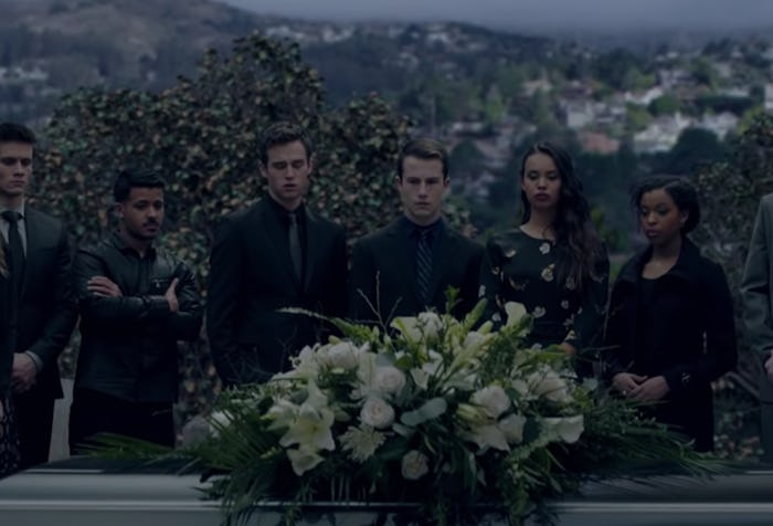 It feels safe to assume that Ani is also the one narrating the teaser, in which she tells Deputy Standall that the kids at Liberty High are "connected by their secrets." The last thing we her Ani say is, "Anyone could have done this." That's when the camera pulls back away from Clay revealing the entire group of characters standing over a casket — Bryce's casket.