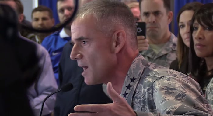 Earlier this week, Tracye Whitfield told Colorado Springs' KKTV that her 18-year-old son, as well as four other black cadets at the prep school, discovered the words "Go home" followed by a racial slur written on the whiteboards outside their dorm rooms. The prep school is a 10-month program that prospective students attend before acceptance to the four-year Air Force Academy program. "So many young black men are getting killed, and there is no justice for them," Whitfield told the local news station. "It’s a nerve-racking feeling. These racial slurs cannot be tolerated." On Thursday, Silveria gathered the school's 4,000 students and 1,500 staff members to hear his condemnation of the incident, and what place racism has within his Academy (spoiler: it's none).