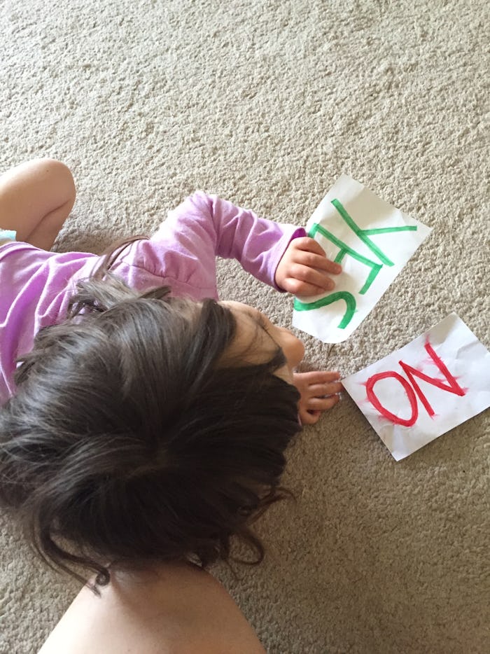 This is true for the little girl who met Esmé on a playground and, upon hearing that Esmé did not speak, implied that she must be "stupid." For the well-intentioned mom who asked about Esmé at Starbucks and then explained that she “had the opposite problem” because her son was gifted. For, apparently, the school psychologist who stated that she didn’t think my daughter was using her “yes,” “no,” “help,” and “all done” cards meaningfully — something she’s done for almost two years — because she put them in her mouth after selecting them. Esmé puts everything in her mouth (except for food), but that doesn't mean her selections are unintentional.