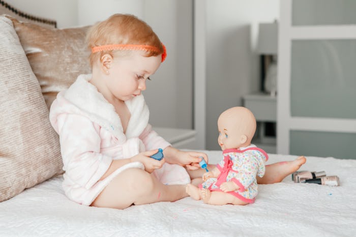 I spoke with Maureen Healy, an expert on sensitive children and the author of Growing Happy Kids, about when we can expect babies to appear interested in dolls, and what draws them to dolls in particular. "Most babies appear interested in stuffed animals and some dolls between 12 and 18 months of age," Healy says. "At this developmental point they're often interested in pretend play and use these dolls or stuffed animals to participate in their play." So don't worry if your baby still isn't interested before their first birthday. Healy adds that you also shouldn't necessarily "worry" if they like dolls or not because "whether a child likes or dislikes dolls simply reveals his or her preferences. There is not necessarily a 'bigger issue' if a child doesn't like dolls."