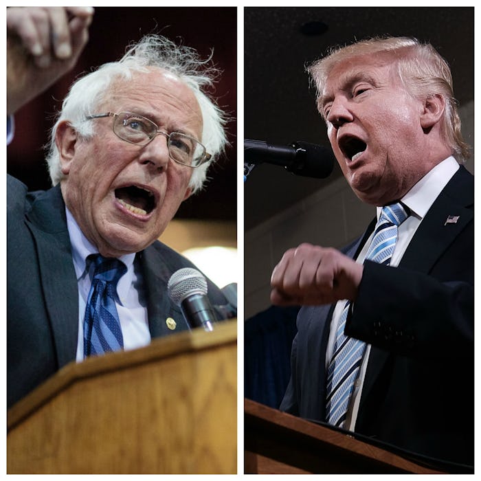 While their policy positions may seem polar opposite, Sanders and Trump are quite similar. Both are populist, "outsider" candidates — Trump has never held political office and Sanders is new to the Democratic party having served in the Senate as an Independent for the past few decades. Both have a seeming cult-like and vocal group of supporters. And violent protests have been carried out by both candidates’ followers.