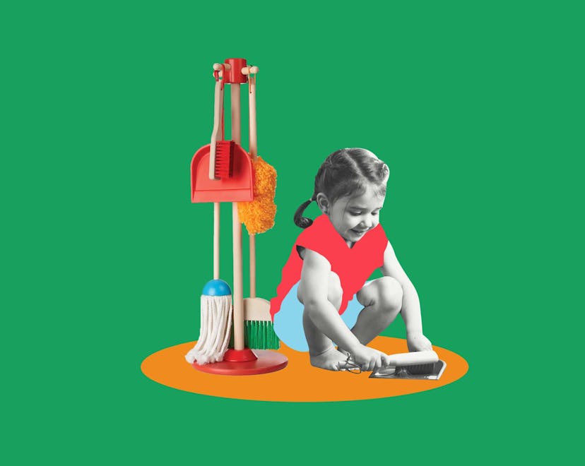 Letting your child pretend clean to their heart’s content is all fun and games until you realize there are serious developmental benefits behind this type of play — it just might become the activity you want them to engage in the most. “As brains develop, they drive certain behaviors naturally that then help kids to acquire new skills,” says Phillips. And with regard to playing cleaning, she says “there's tremendous cognitive benefit to allowing space for that type of play: language, motor, creativity, flexible thinking, problem-solving, and also that social emotional piece of developing empathy.”